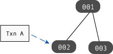 In the following figure, Txn A and Txn B are both holding read locks on record 002, while Txn C is holding a write lock on record 003: