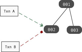 For example, if Txn A holds a write lock (an exclusive lock) on record 002, then if Txn B tries to obtain a read or write lock on that record, the thread of control in which Txn B is running is blocked: