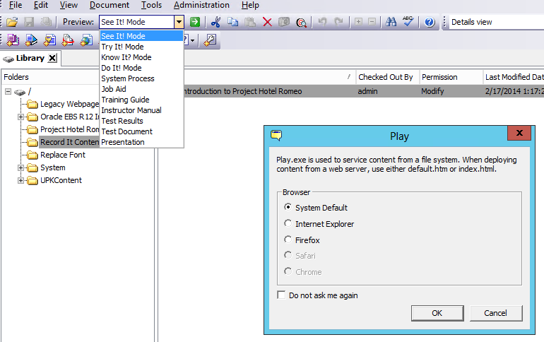 Outlines of content are a great way to create an organized group of content, but content can also be created directly in the Library. A great example is contributed content created with the Record It! wizard, which is stored in a dedicated Library folder. Content may now be previewed from the Library tab, allowing more freedom to preview or review content without an outline.