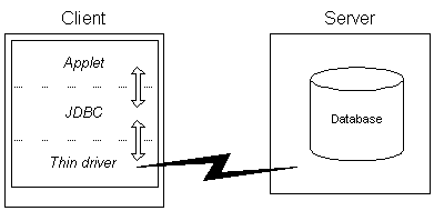 The following figure illustrates how JDBC components and the driver run in the same memory space as an applet.