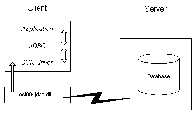 Note: Don't confuse the terms JDBC and JDBC drivers. All Java applications, no matter how they are developed or where they execute, ultimately use the JDBC-level drivers to connect to Oracle. However, coding using the pure JDBC API is low-level development, akin to using the Oracle Call Interface (OCI) to develop a database application. Like the OCI, the JDBC API provides a very powerful, but also very code-intensive, way of developing an application.