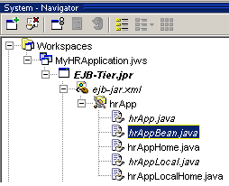 - In the Navigator, expand the folders for you project (EJB-Tier.jpr),