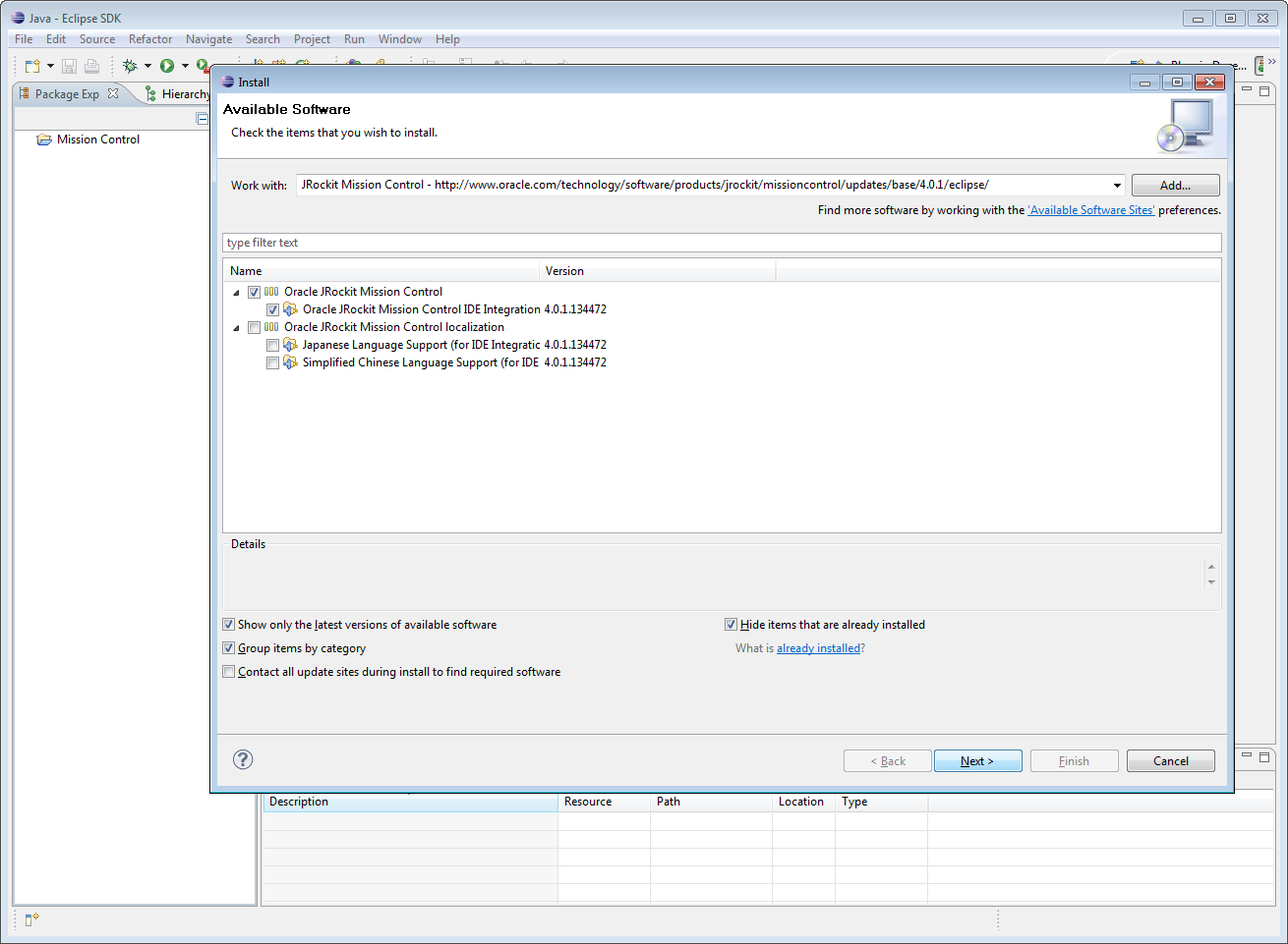 the step-by-step instructions. http://download.oracle.com/otn/missioncontrol/updatesites/base/4.0.1/eclipse/ Step-by-Step Instructions Before starting, make sure that you have downloaded and installed Eclipse 3.5. |